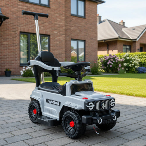 A sturdy push car designed for toddlers and young children, offering safe outdoor mobility and active play. Features a comfortable seat, easy-to-grip handles, and smooth-rolling wheels...